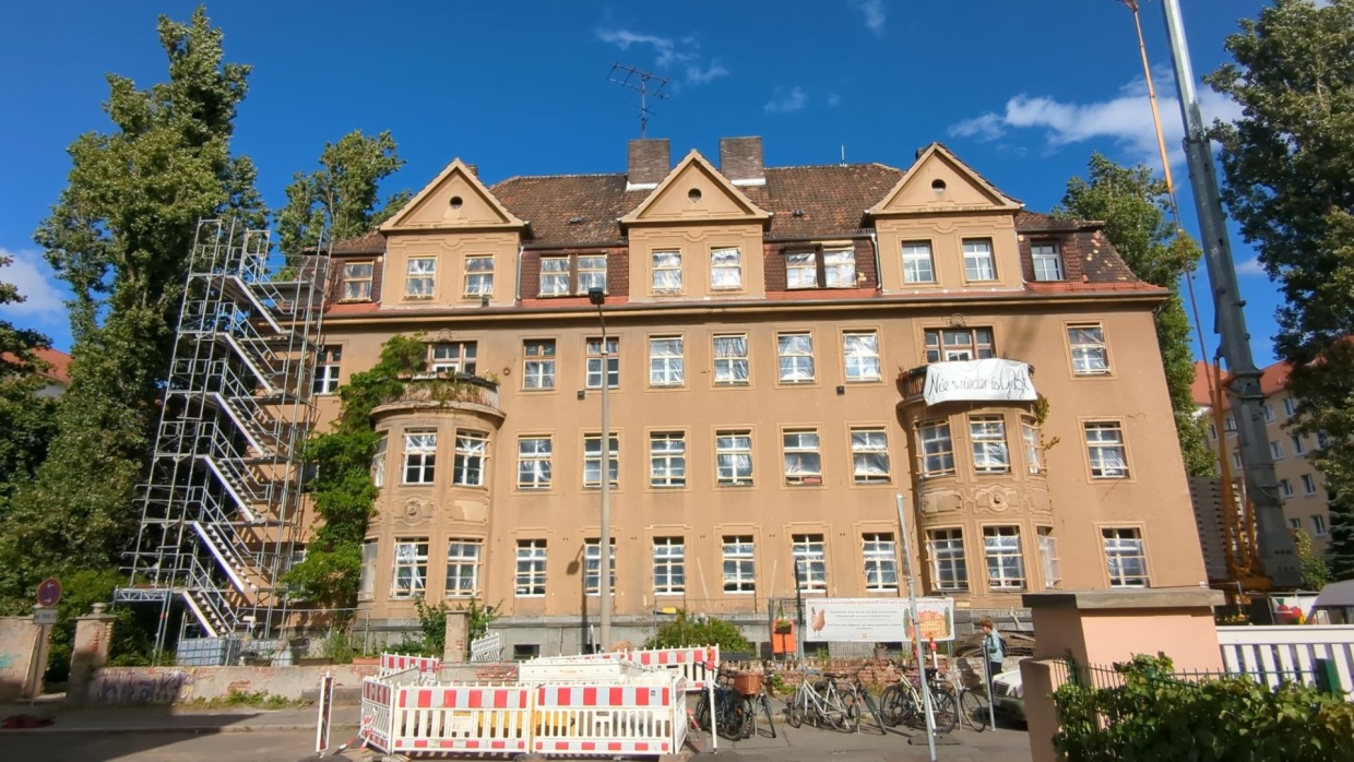 Eines der ersten Projekte der SoWo steht in Lindenau. Das große Gründerzeithaus an der Georg-Schwarz-Straße wurde noch vor 1900 errichtet. Nachdem ein österreichischer Investor es jahrelang verfallen ließ, blieben 2017 nur noch drei Mietparteien übrig. Die Hoffnung, das Haus alsbald zu sanieren, schwand. Im selben Zeitraum gründete sich gerade die SoWo. Die fand, obwohl sie gerade erstgegründet war, einen Weg, dem Investor das Haus abzukaufen. Heute lebt hier eine engagierte Hausgemeinschaft in Selbstverwaltung. Abgesichert werden sie durch einen Pachtvertrag mit der SoWo.